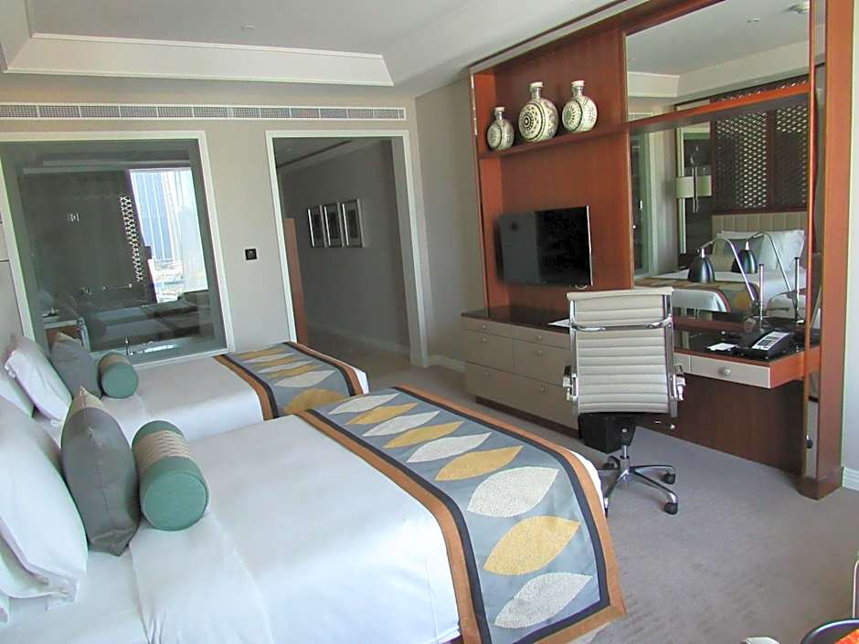 Featuring partial views of the stunning Burj Khalifa., this modern, air-conditioned room offers a seating area with a flat-screen TV, a mini-bar and a tea/coffee maker. The marble bathroom is fitted with 2 sinks, a bath, a hairdryer and Molton Brown toiletries.
